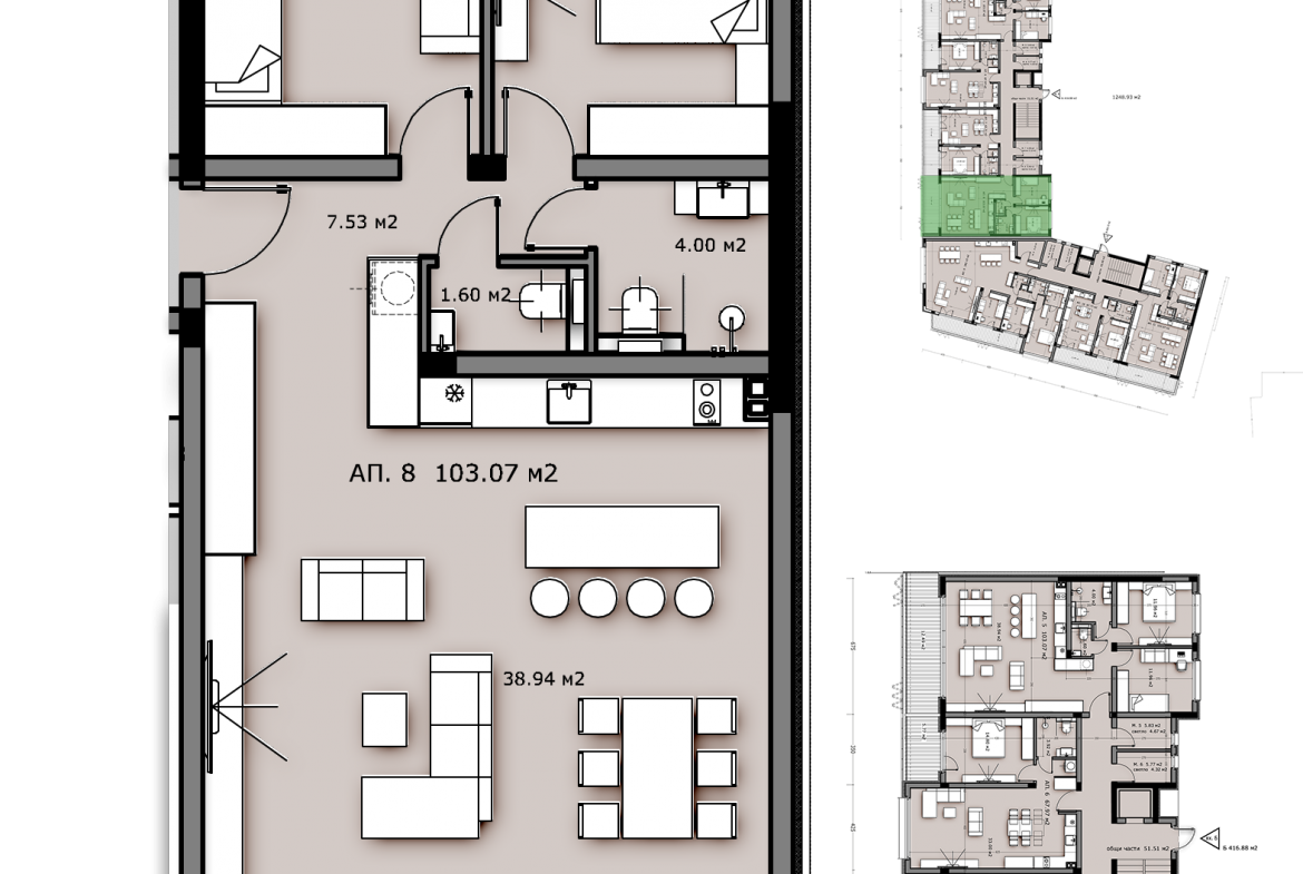 Апартамнет А1 е с обща застроена площ от 125.46 кв.м.