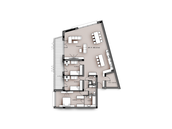 Апартамнет А9 е с обща застроена площ от 204.80 кв.м.