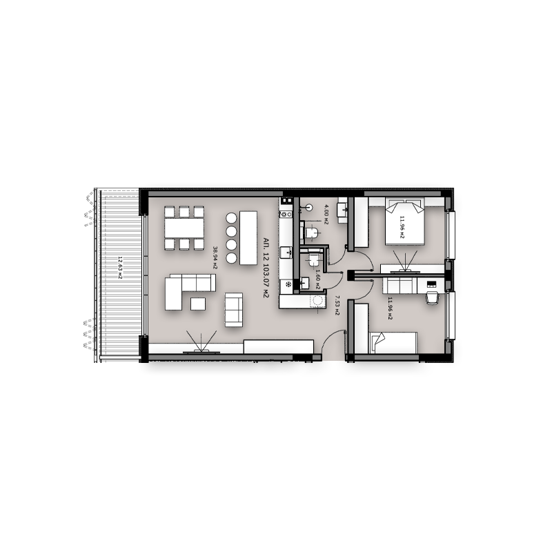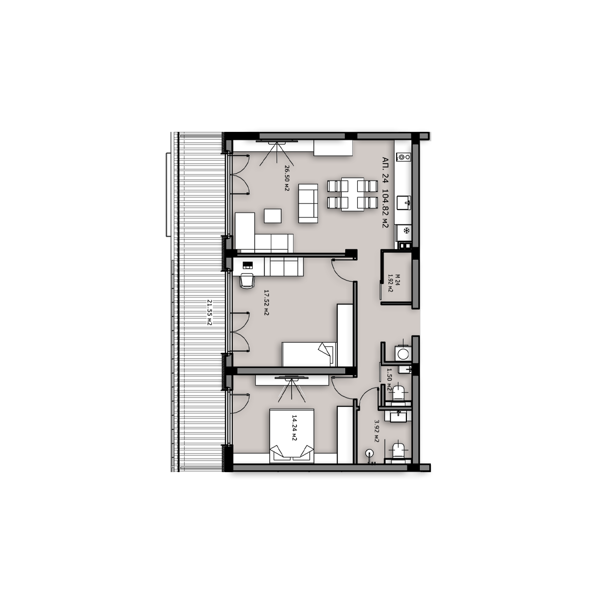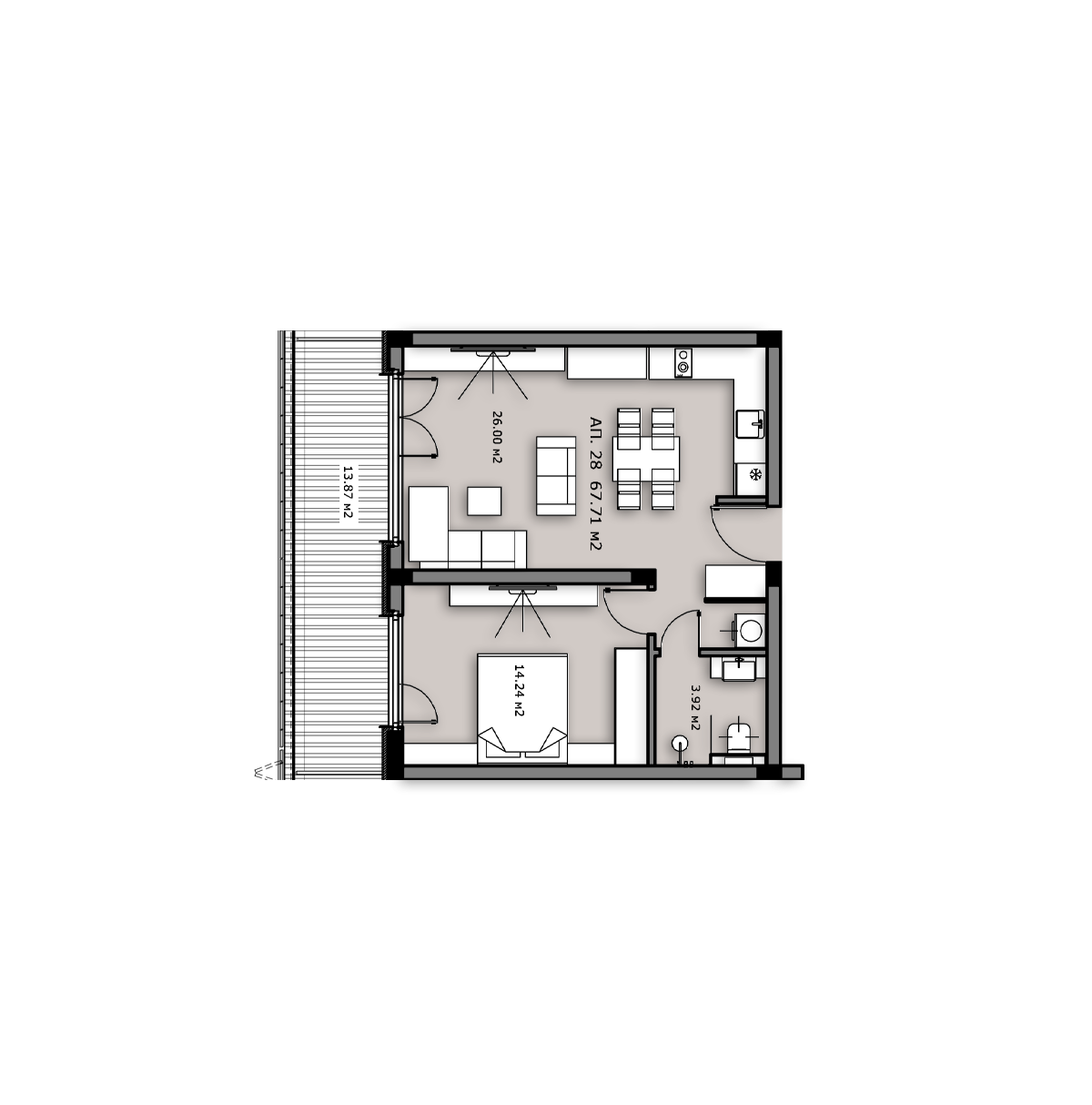 Висококачествена алуминиева дограма с троен стъклопакет, даваща максимално шумоизолация и топлоизолация на помещенията.